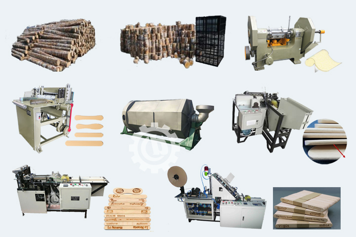 Ice Cream Sticks Making Line is consist of Ice Cream Stick Rotary Cutting Machine, Ice Cream Stick Punching Cutting Machine, Ice Cream Stick Drying & polishing machine, Ice Cream Stick Selecting machine (Basic Wheel Type Selecting Machine and Vision Type Selecting Machine) Ice Cream Stick Chamfering Machine and Ice Cream Stick bundling machine.